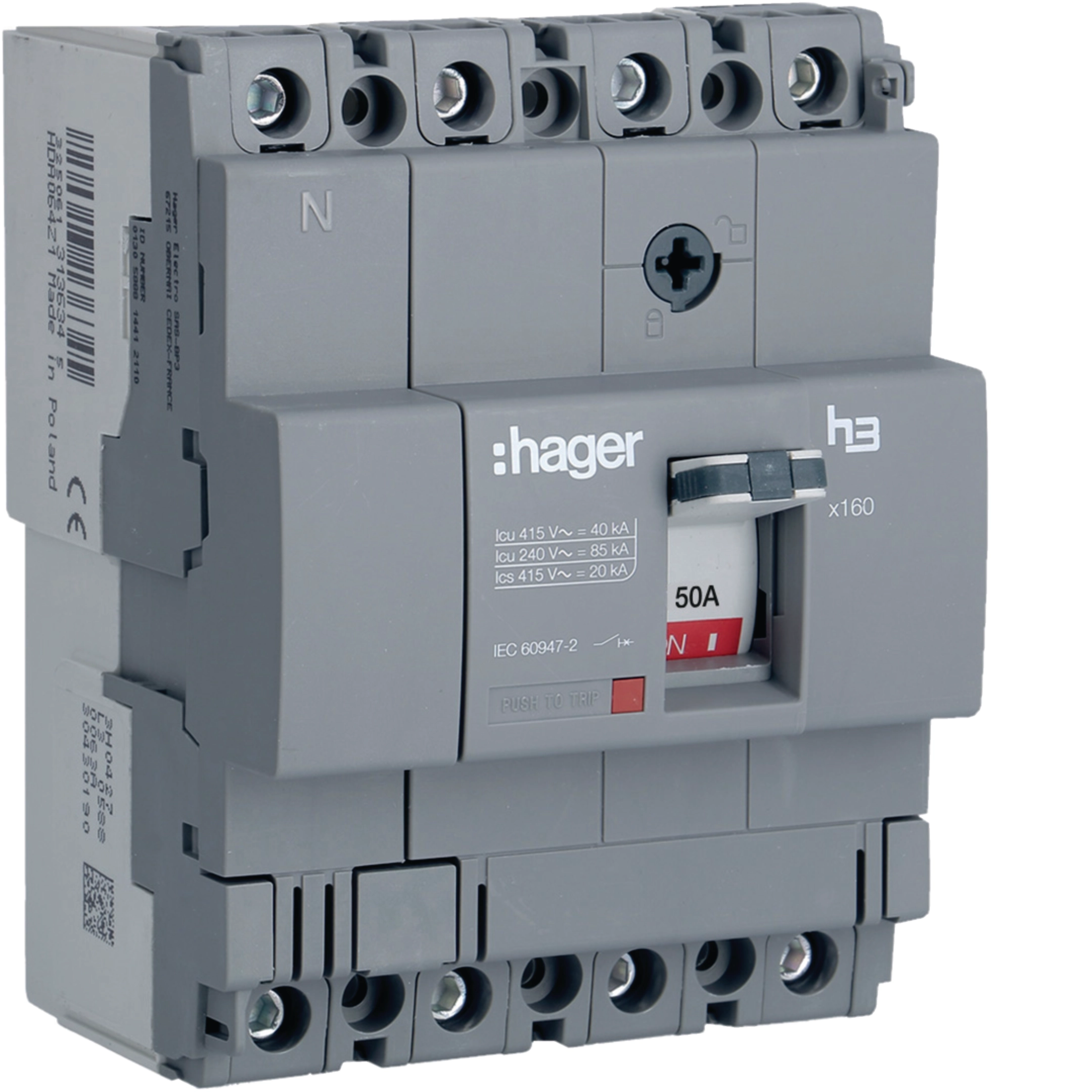 Moulded Case Circuit Breaker h3 x160 TM FIX 4P4D 50A 40kA CTC