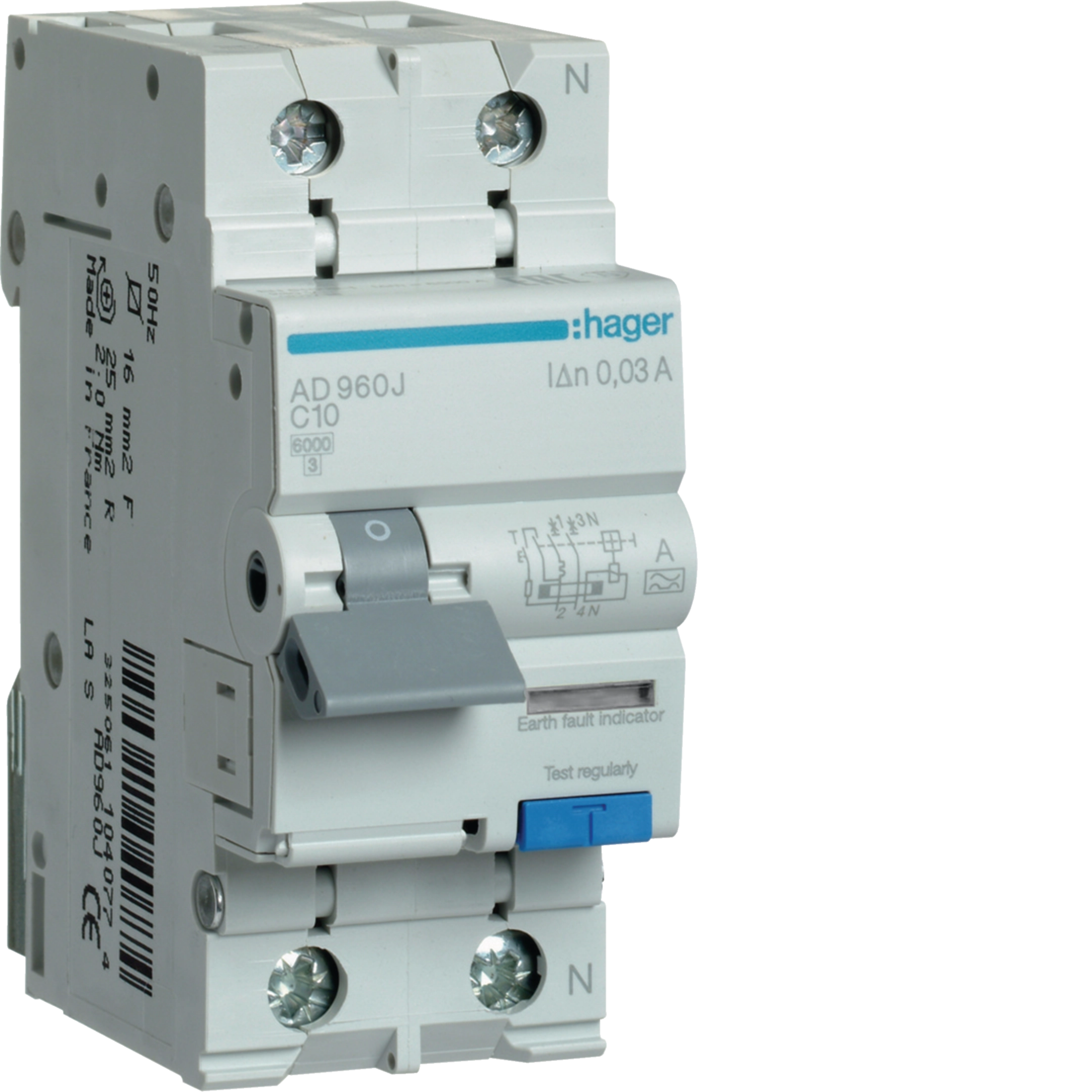 RCBO 1P+N 6kA C-10A 30mA A Class AD960J