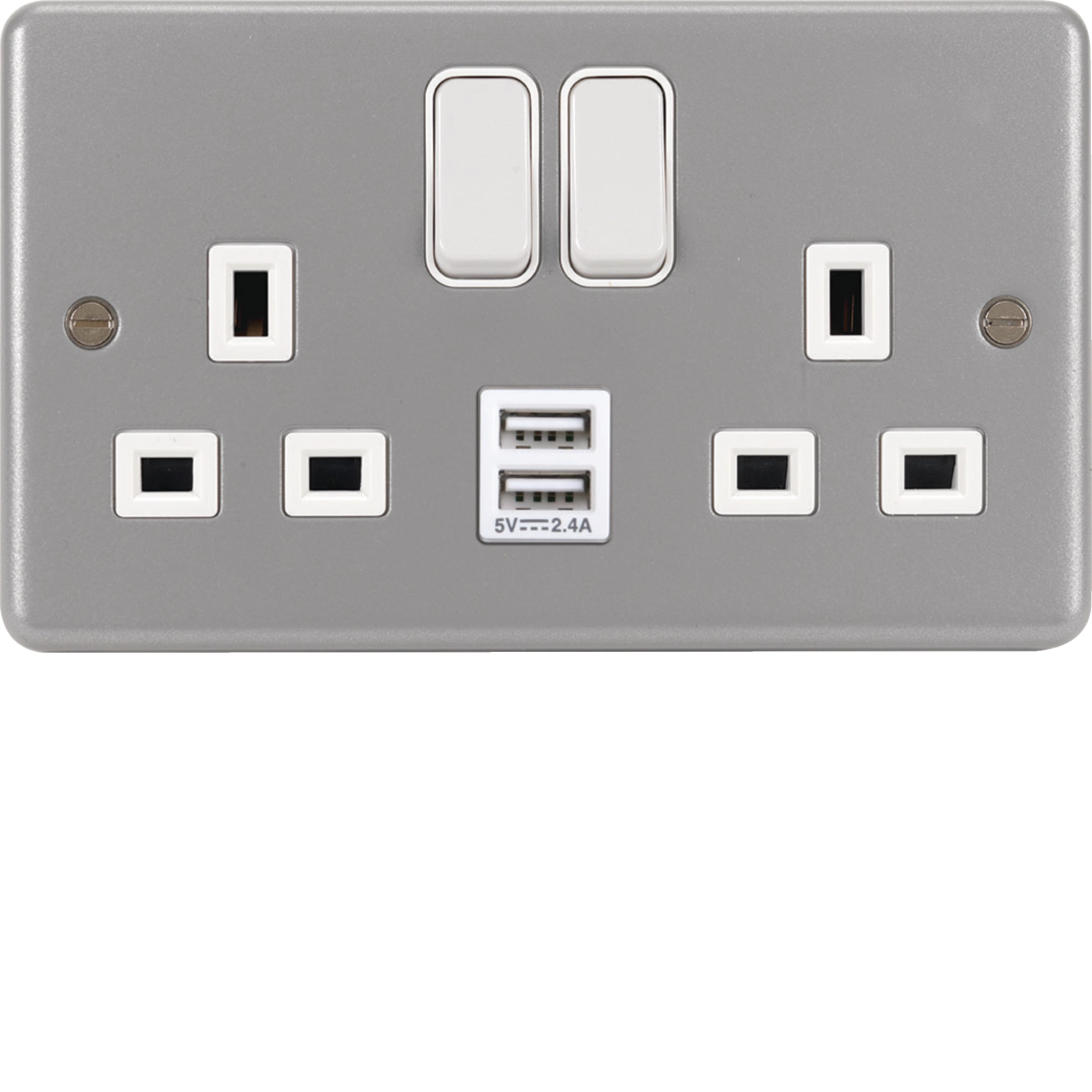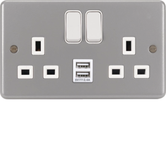 13A 2 Gang Double Pole Switched Socket c/w Twin USB Ports