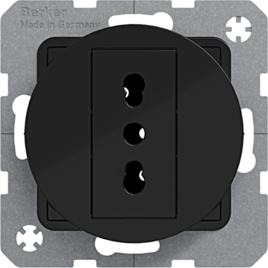 41392145Presa italiana con messa a terra 10 A/16 A Berker R.1/R.3 nero lucido
