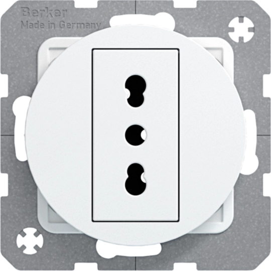 41392189Presa italiana con messa a terra 10 A/16 A Berker R.1/R.3 bianco polare lucido