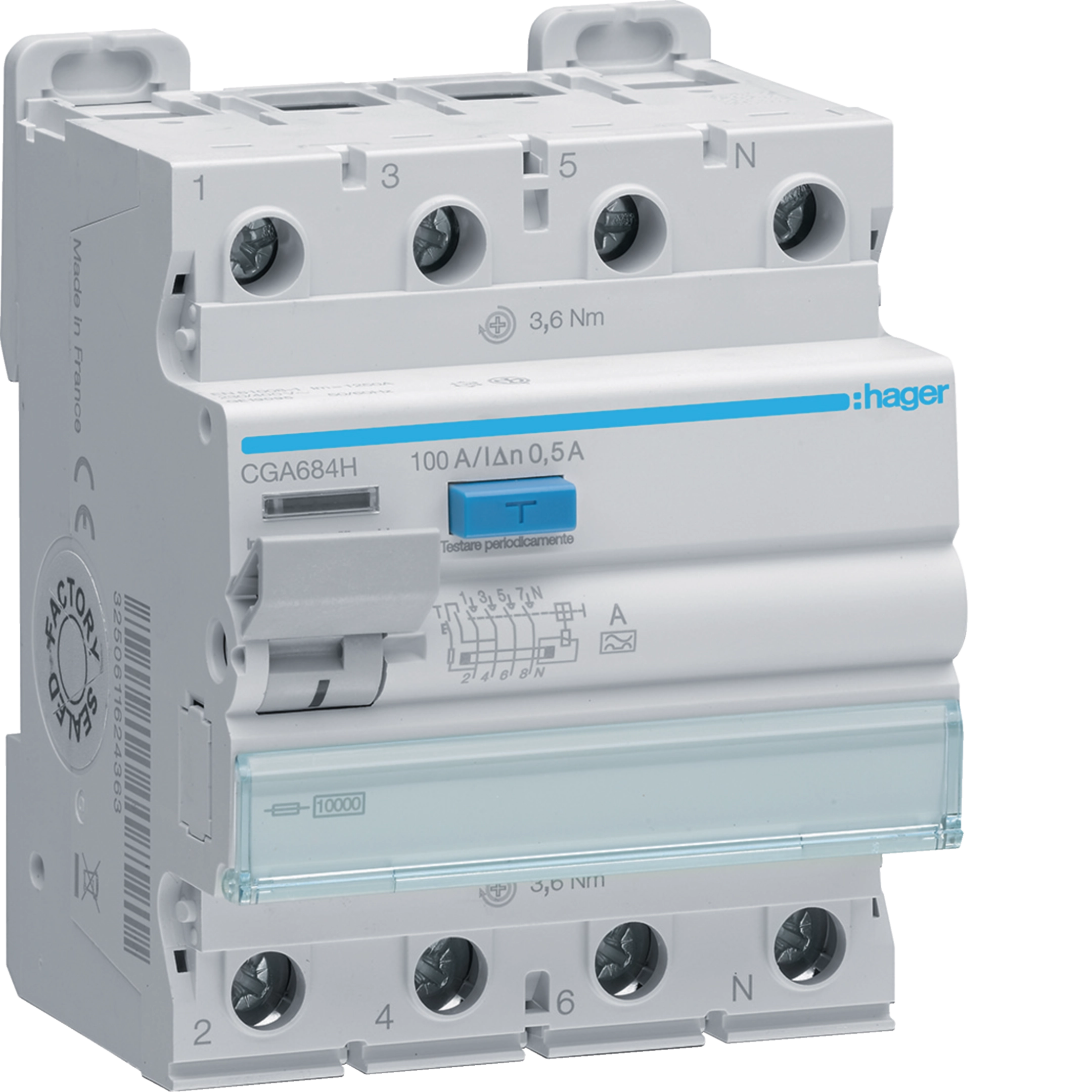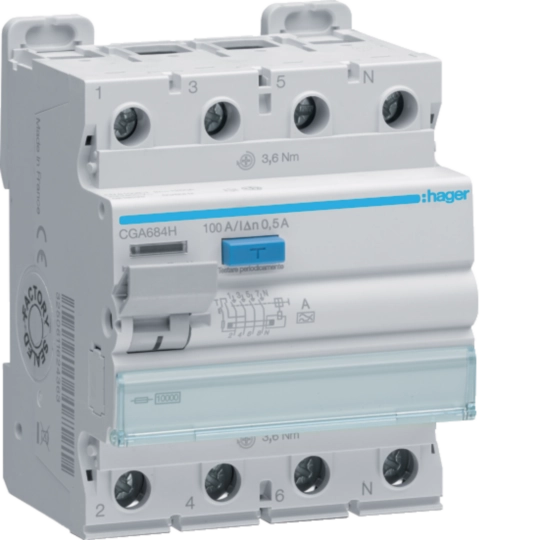 Interruttore differenziale puro 4P 100A tipo A 500mA 4M CGA684H