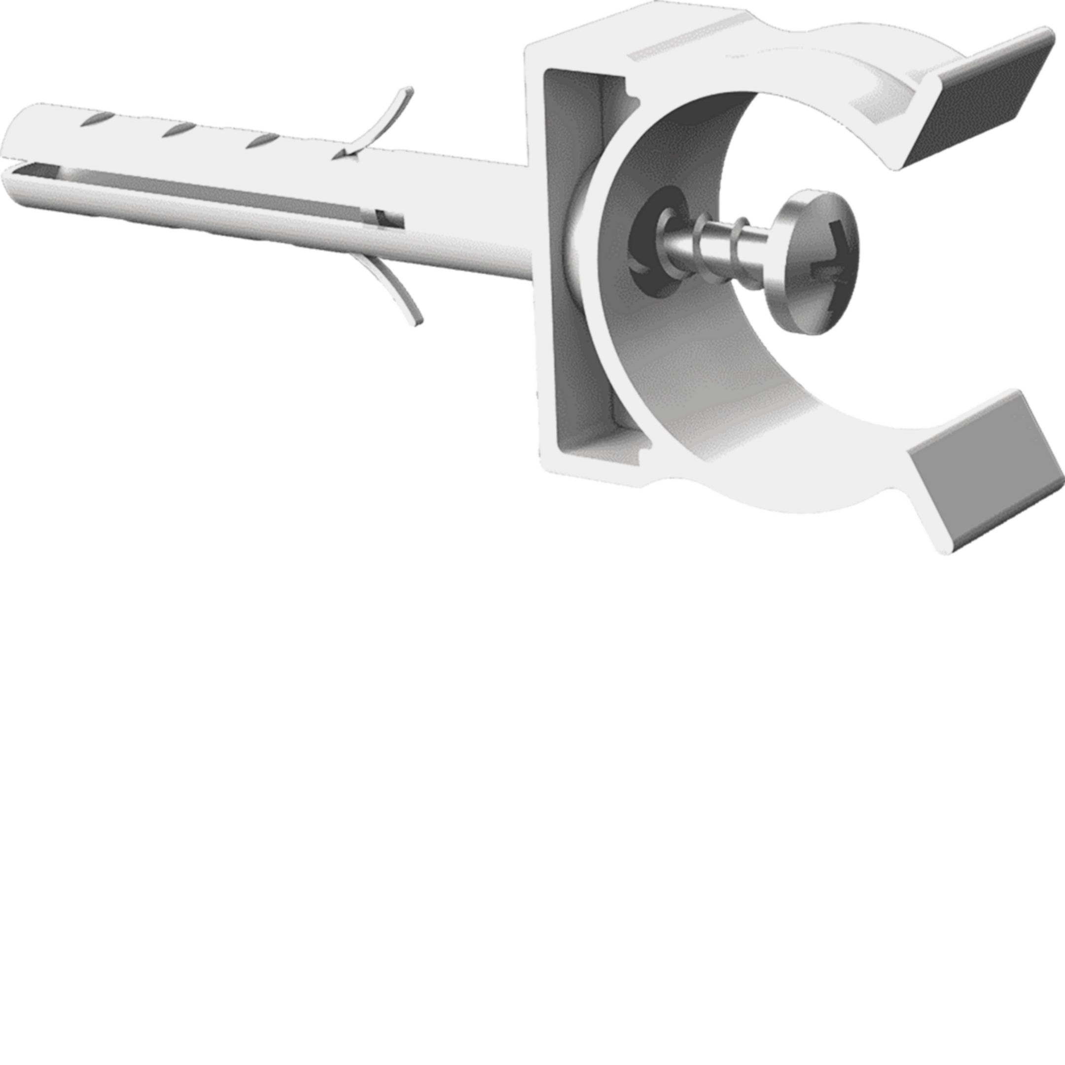 Supporto fissatubo a scatto con tassello diametro 6 mm e vite metallica per tubo rigido diametro 16 mm, in materiale termoplastico. Colore grigio RAL 7035, ideale per impianti elettrici in posizioni scomode dove il tassello integrato agevola l'installazione garantendo comodità e un notevole risparmio di tempo.