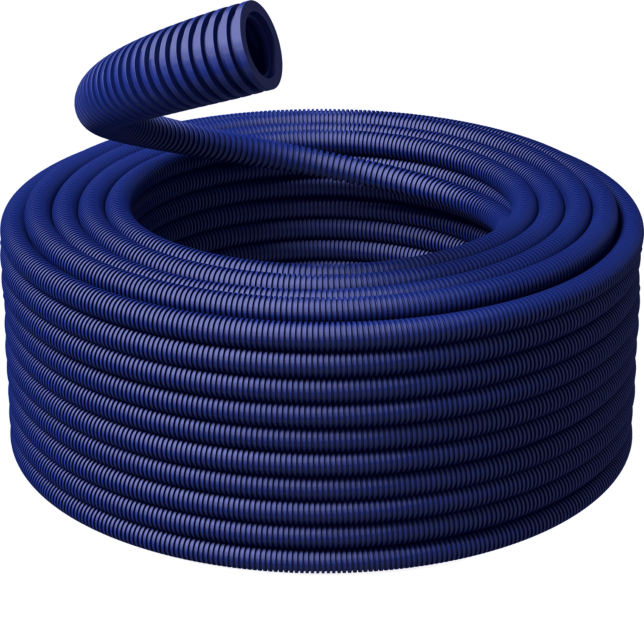 Tubo corrugato pieghevole autorinvenente autoestinguente UL94: V2, diametro 25 mm, colore blu. Classificato 34223-33433 secondo la norma EN 61386, ideale per installazioni elettriche in sottotraccia, all'interno di pareti leggere, controsoffitti, pavimenti flottanti e nel cemento liquido autolivellante. Realizzato in PP LSZH, non propaga la fiamma e resiste al filo incandescente GWT 960 °C (EN 60695-2-11) garantendo massima protezione.