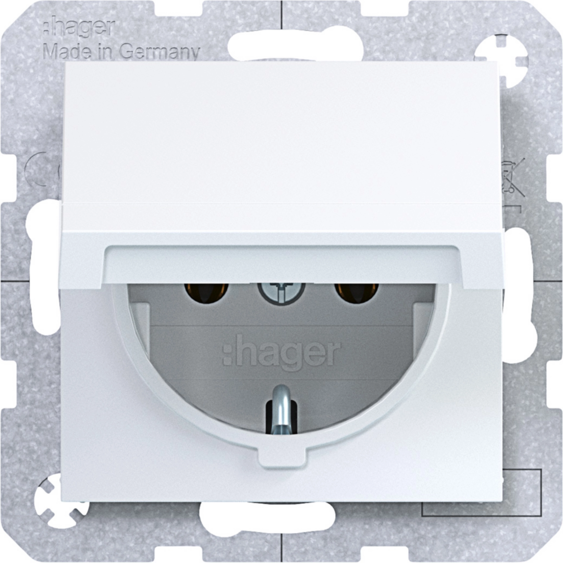 Presa SCHUKO, coperchio con chiusura auto., morsetti plug-in, A.x/ bianco lucido