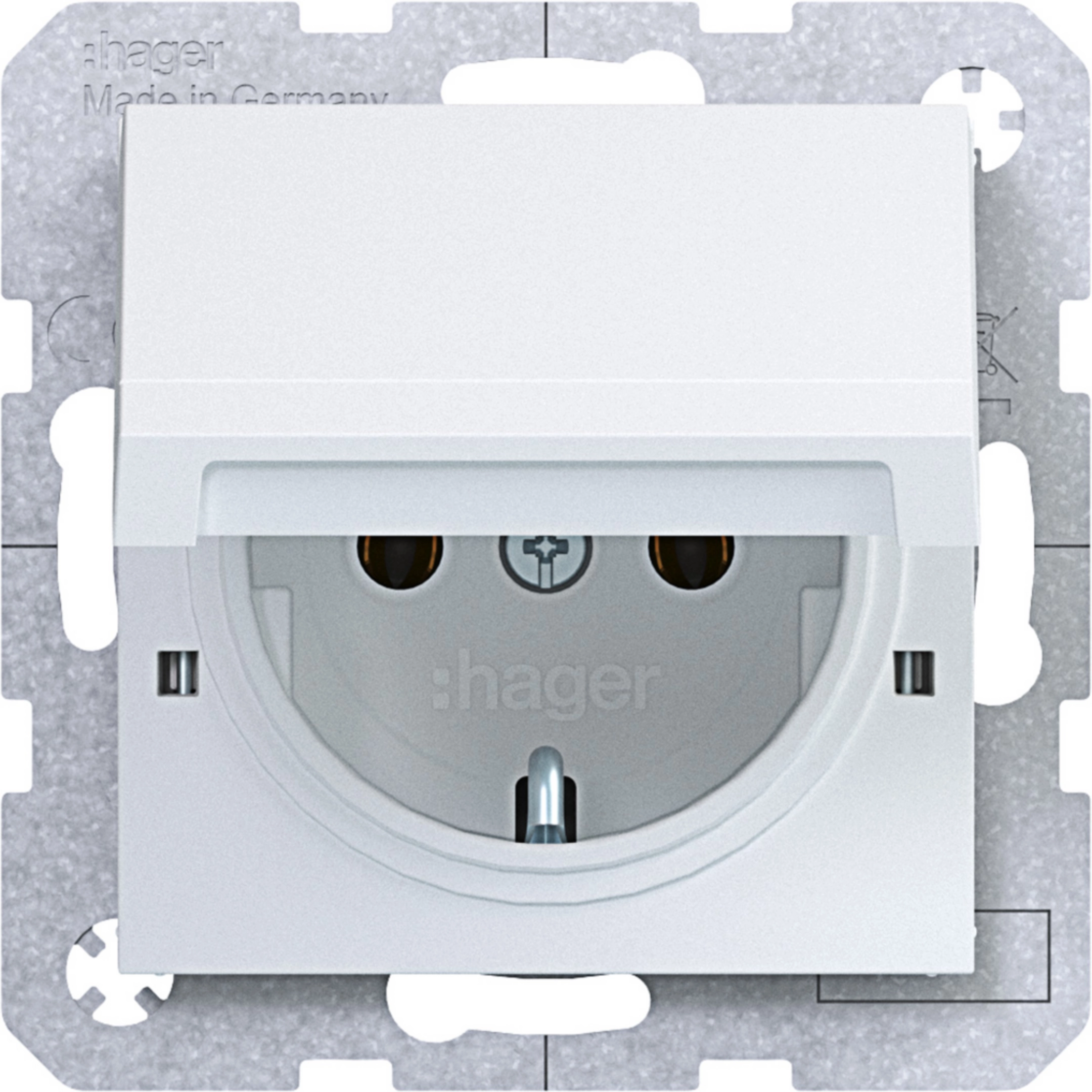 Presa SCHUKO, cop. con chiusura, morsetti plug-in, A.x/C.x, bianco opaco