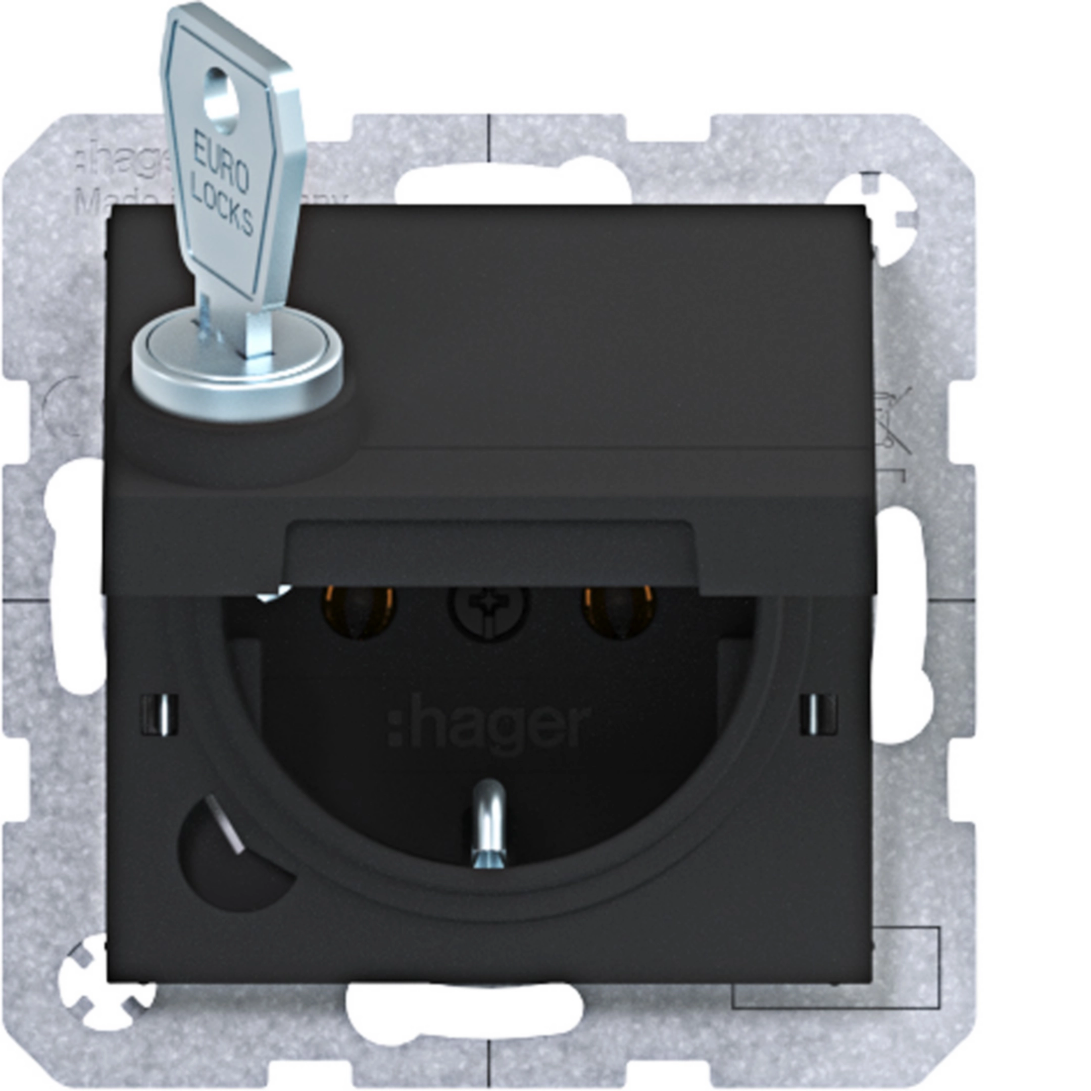 Presa SCHUKO, cop. con chiusura+chiave, morsetti plug-in, A.x/C.x nero op
