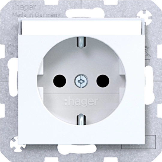 Presa SCHUKO etich, shutter, morsetti plug-in, A.x/C.x bianco luc