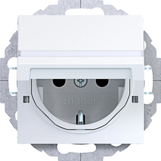 Presa SCHUKO cop. blocc., etich, montaggio variabile 45°, A.x/C.x, bianco luc