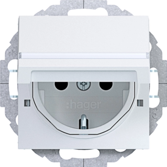 Presa SCHUKO cop. blocc., etich, montaggio variabile a 45°, A.x/C.x bianco op