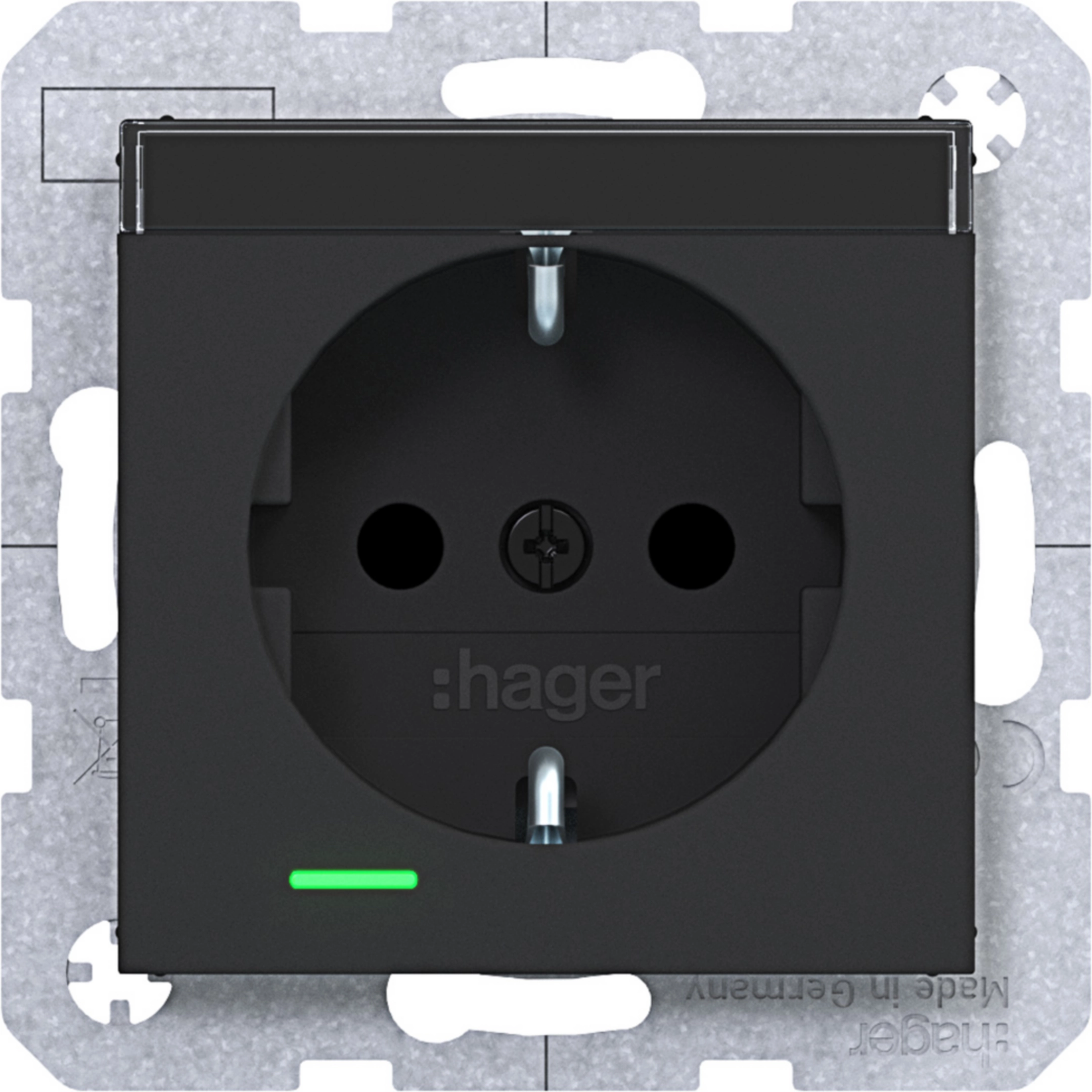 Presa SCHUKO, LED di controllo, etichetta, morsetti a vite, A.x/C.x, nero opaco