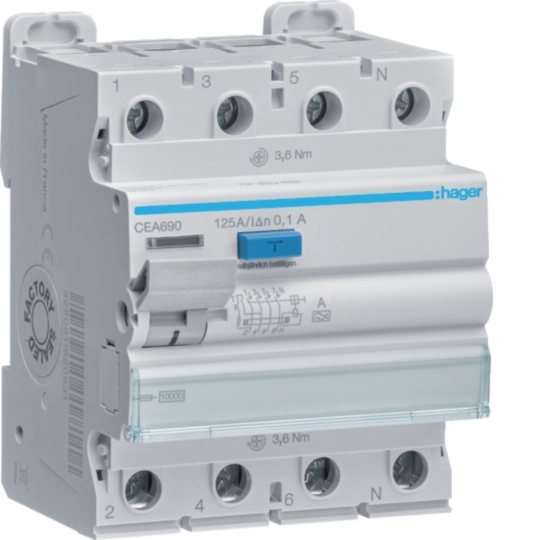 RCCB 3P+N 125A 100mA A
