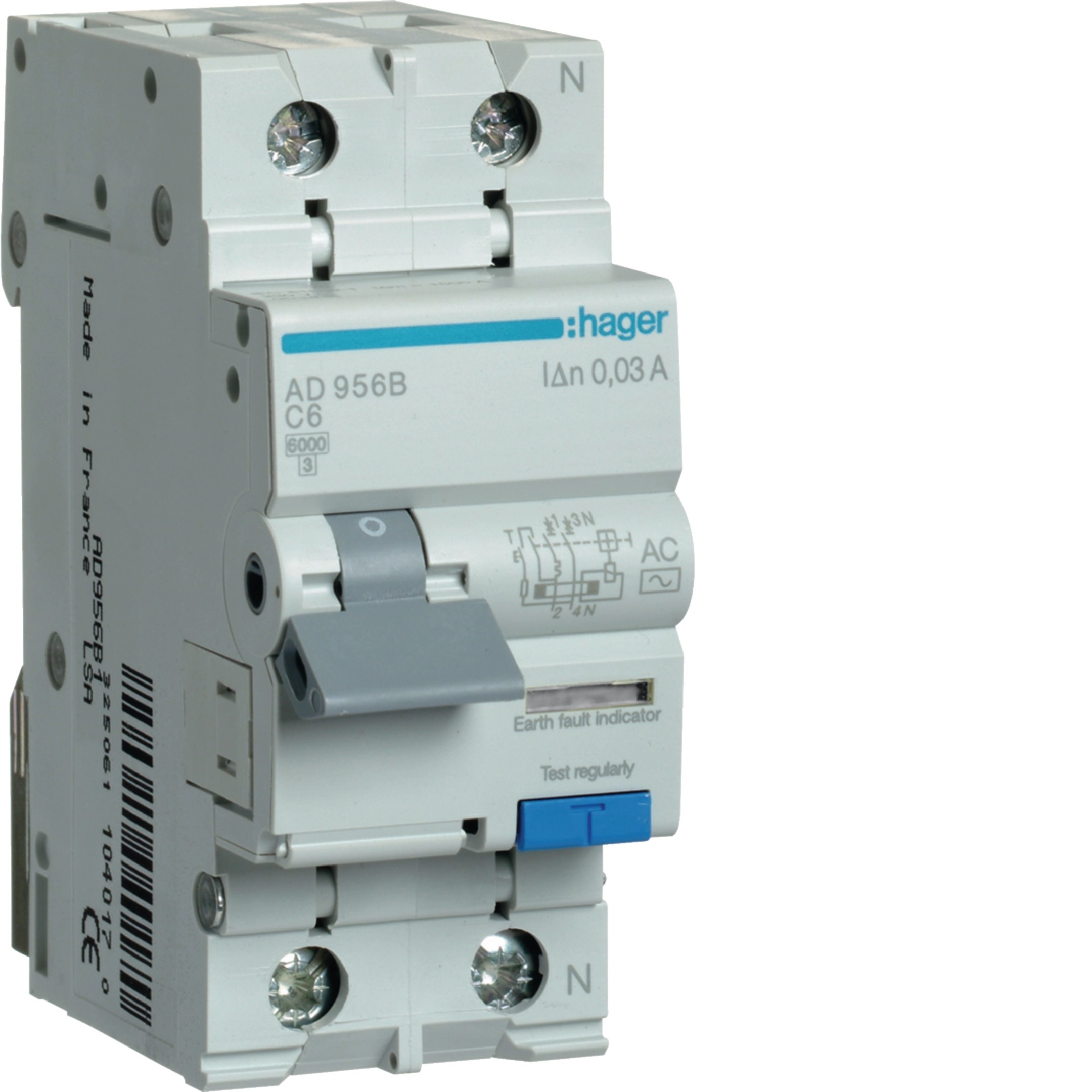 RCBO 1P+N 6kA C-6A 30mA AC Class AD956B