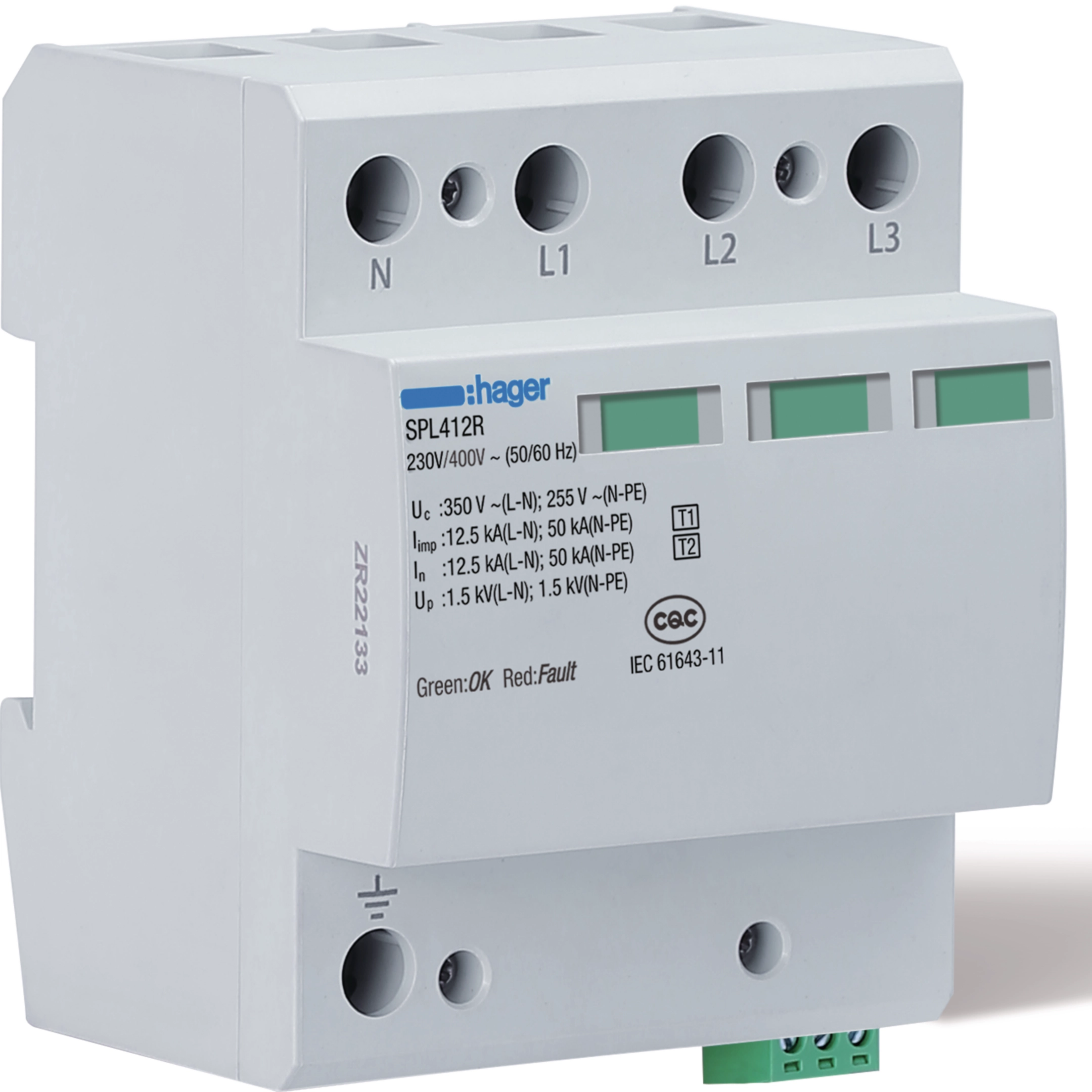 SPD 4P T1+T2 TNS/TT Uc 350V Iimp 12.5kA remote contact SPL412R