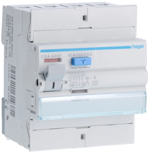 Aardlekschakelaar 4-polig 40 A 500 mA klasse A, CEBEC-keur CGA440E