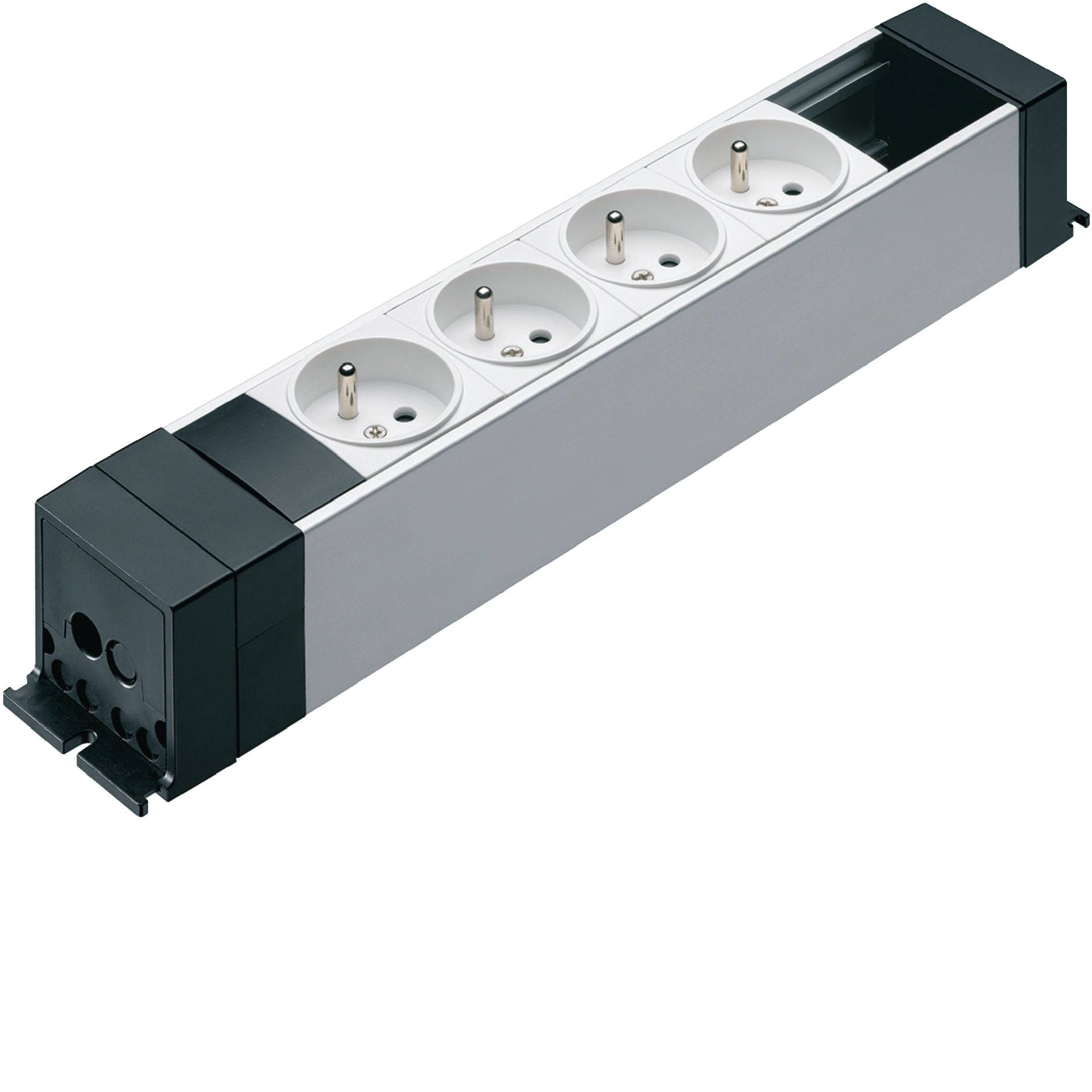 Stopcontactblok 4 x 230V 2P+A met aansluitkl. en 2 reservemod. van 22,5 mm