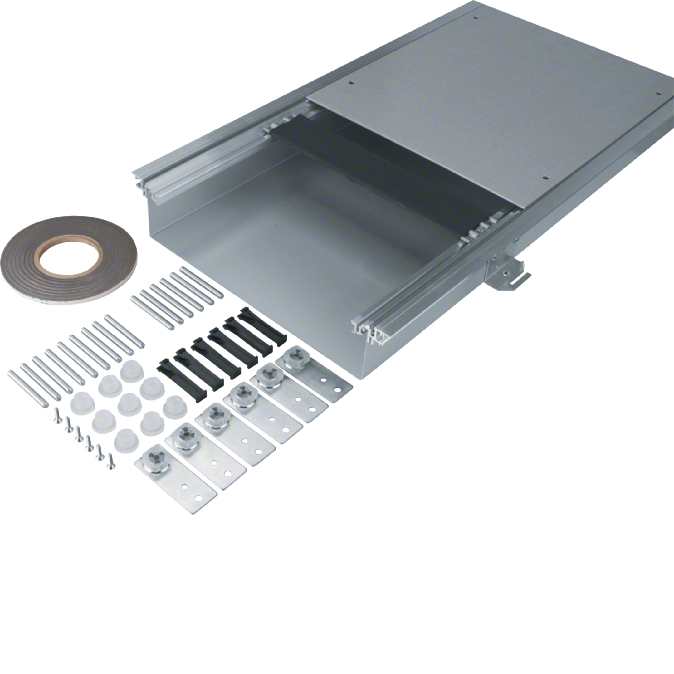 Vloergoot bovenliggend open, bodembak staal 400x(70-110)mm natte reiniging