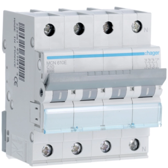 Installatieautomaat 3p+N 10 A C-karakteristiek 6 kA MCN610E