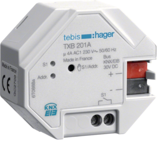 KNX schakelactor, inbouw, 1-voudig, 4 A TXB201A