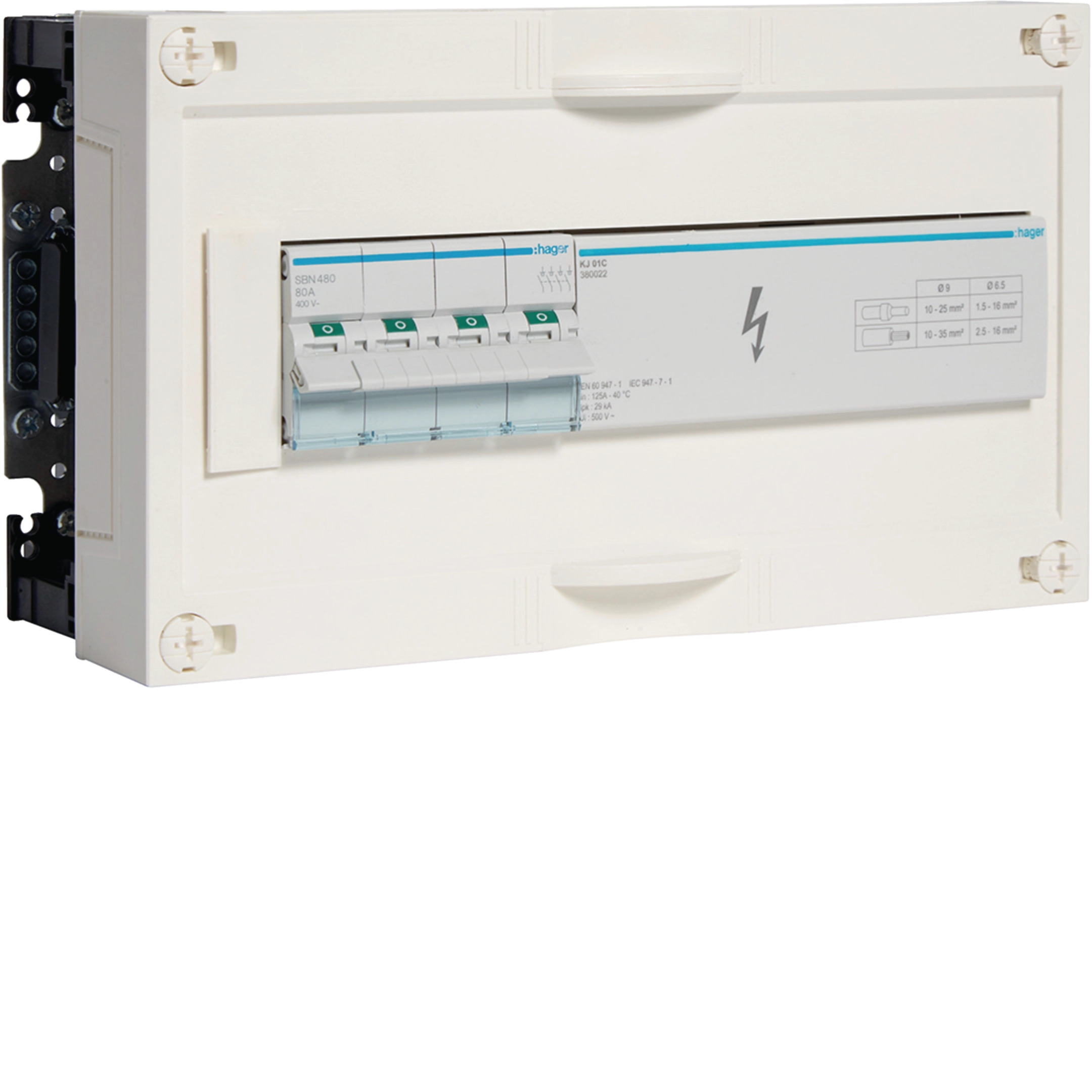 Bouwunit, 150x250mm, met lastscheider 80 A, 4P + verdeelklem (KJ01C) UY11B3N