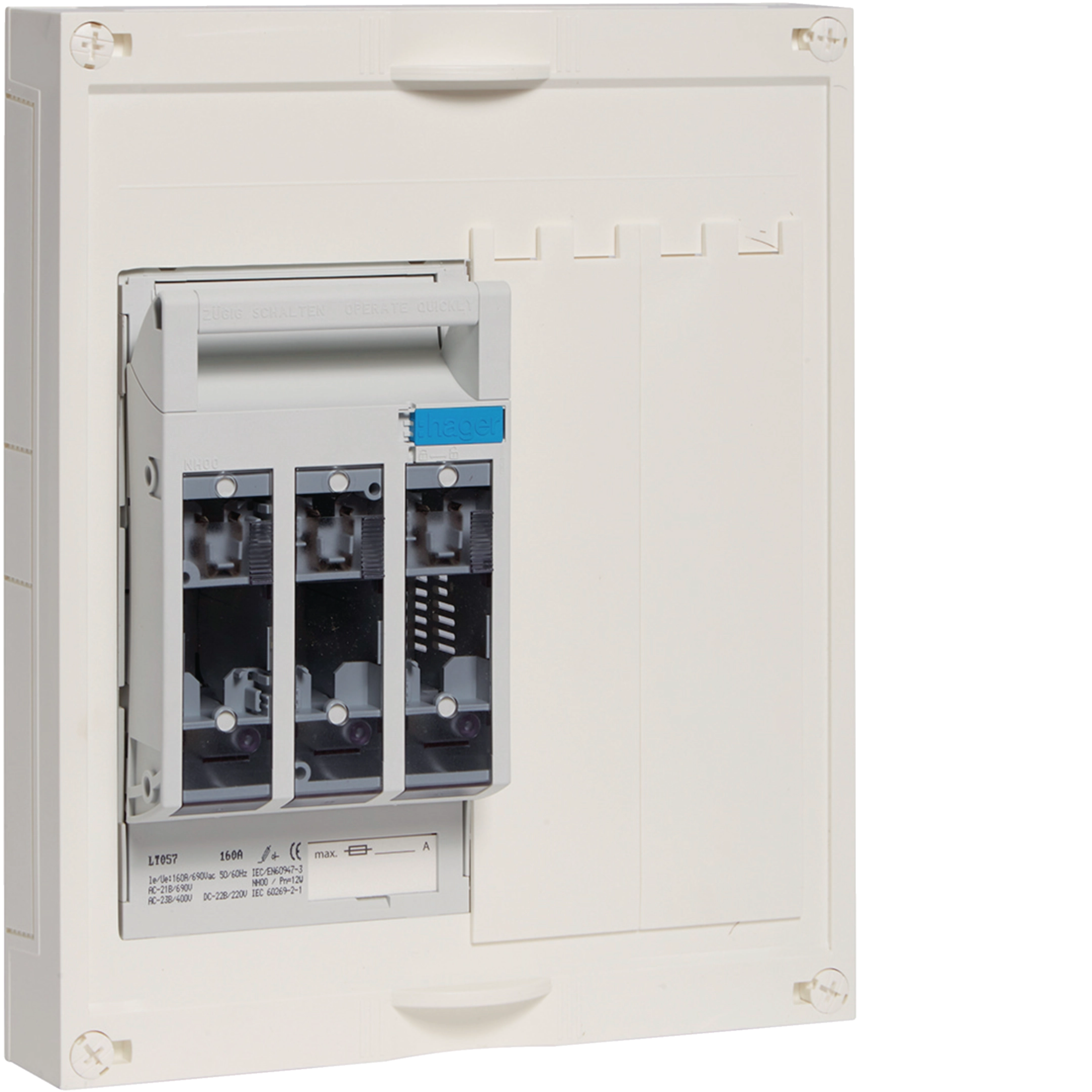Bouwunit, 300x250mm, met 1x NH00 mespatroonlastsch. op railsys. 60mm UY21G1N
