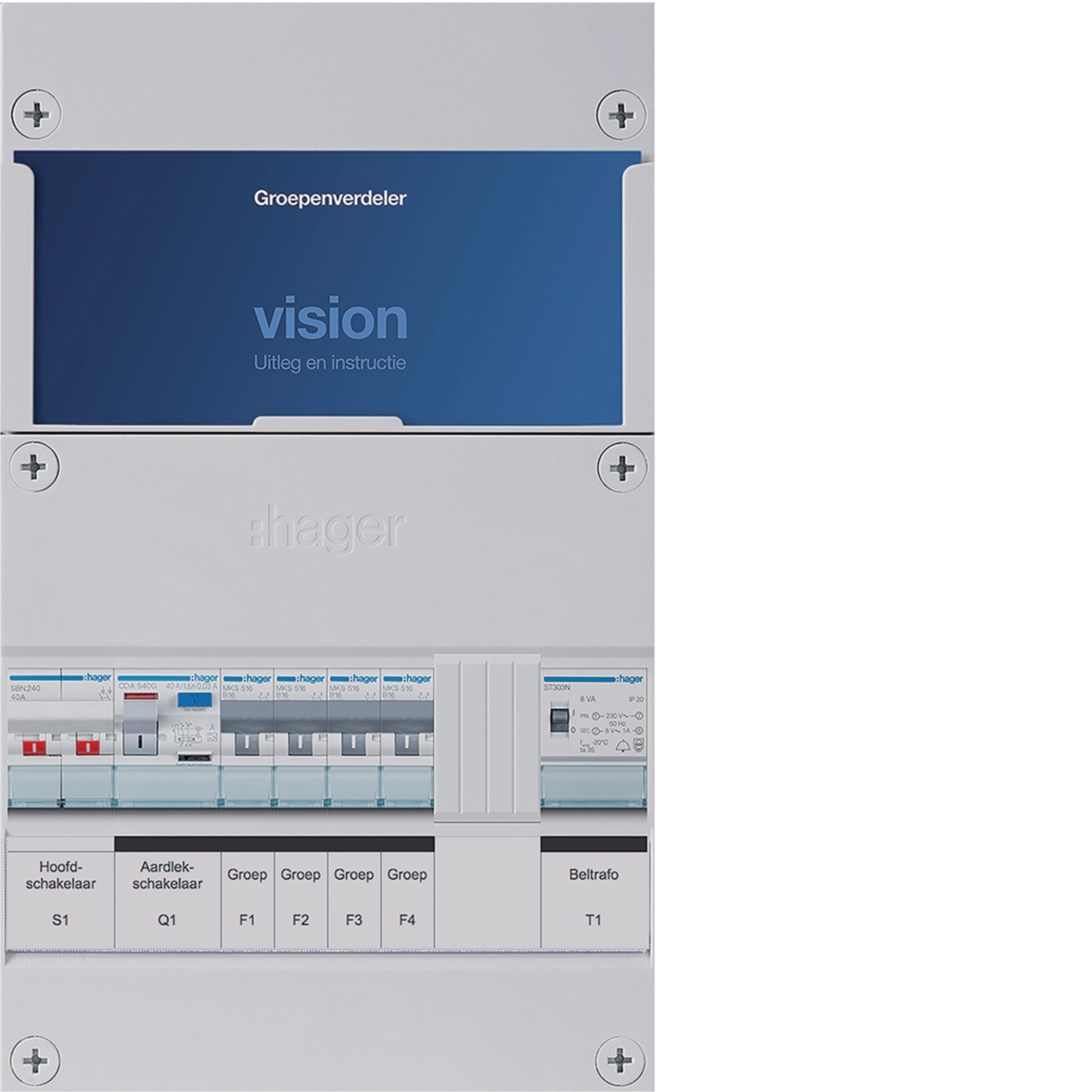 4-groepenverdeler HS, ALS 30 mA/HACO/direct +T, 1-fase VKG400A-T