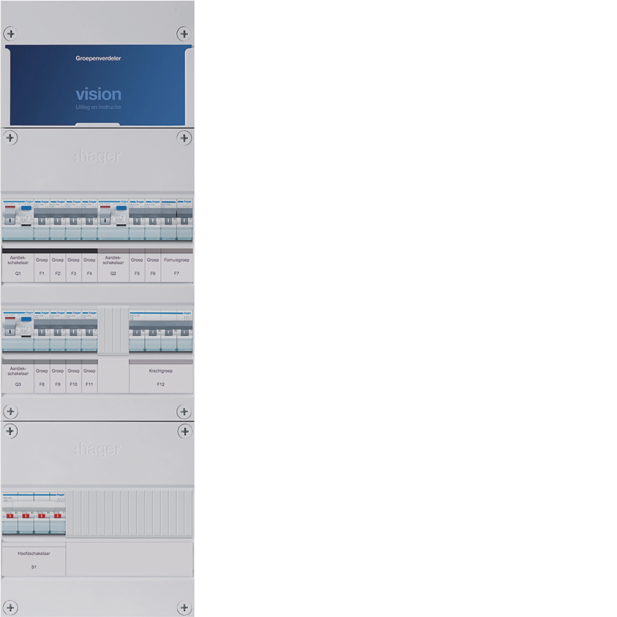10-groepenverdeler HS, 3 x ALS 2-polig 30 mA +D+F, 3-fase VKG442M-DF