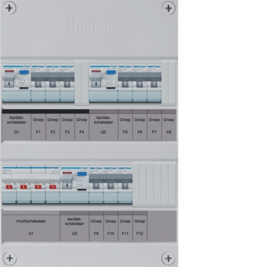 9-groepenverdeler HS, 3 x ALS 2-polig 30 mA, 3-fase, excl. buisinvoer