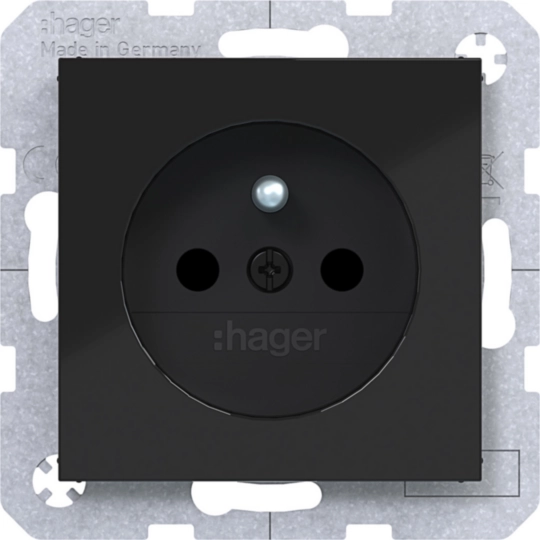 Wandcontactdoos aardpen, Safety Plus, steekkl., A.x/C.x, zwart glz. WAS1600BG