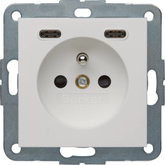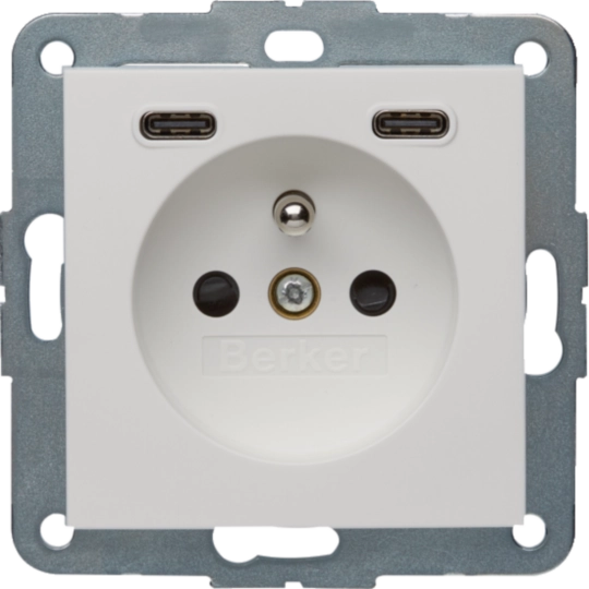 48161909B.x Gniazdo z uziemieniem z ładowarką USB C+C 20W PD, biały mat