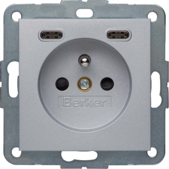 48161404B.x Gniazdo z uziemieniem z ładowarką USB C+C 20W PD, alu mat