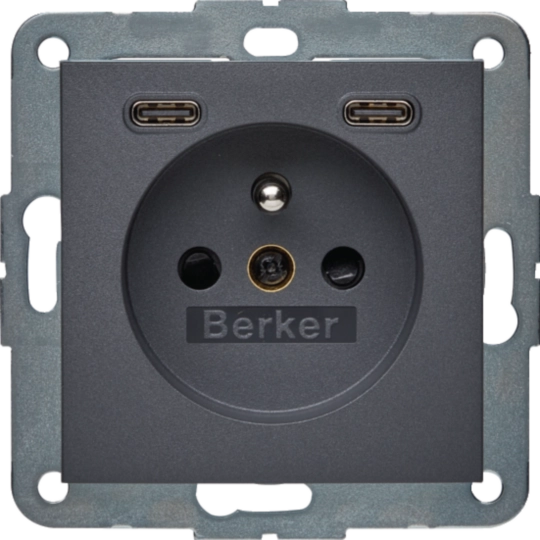 48161606B.x Gniazdo z uziemieniem z ładowarką USB C+C 20W PD, antracyt mat