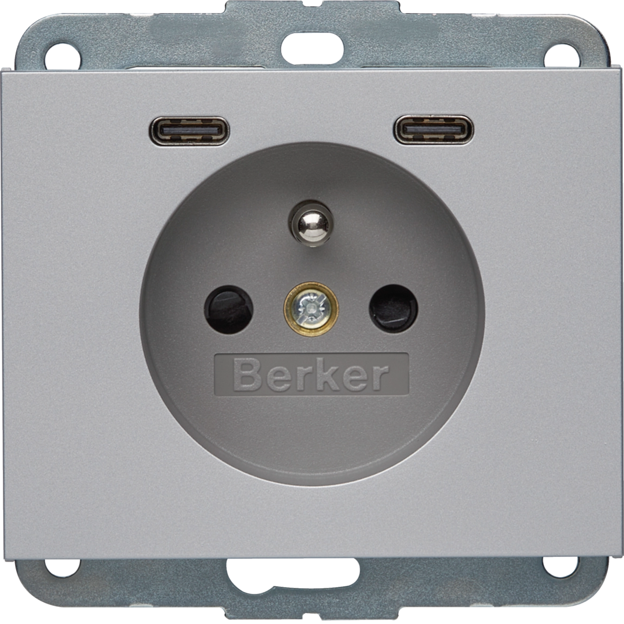 K.5 Gniazdo z uziemieniem z ładowarką USB C+C 20W PD, alu mat lakierowany