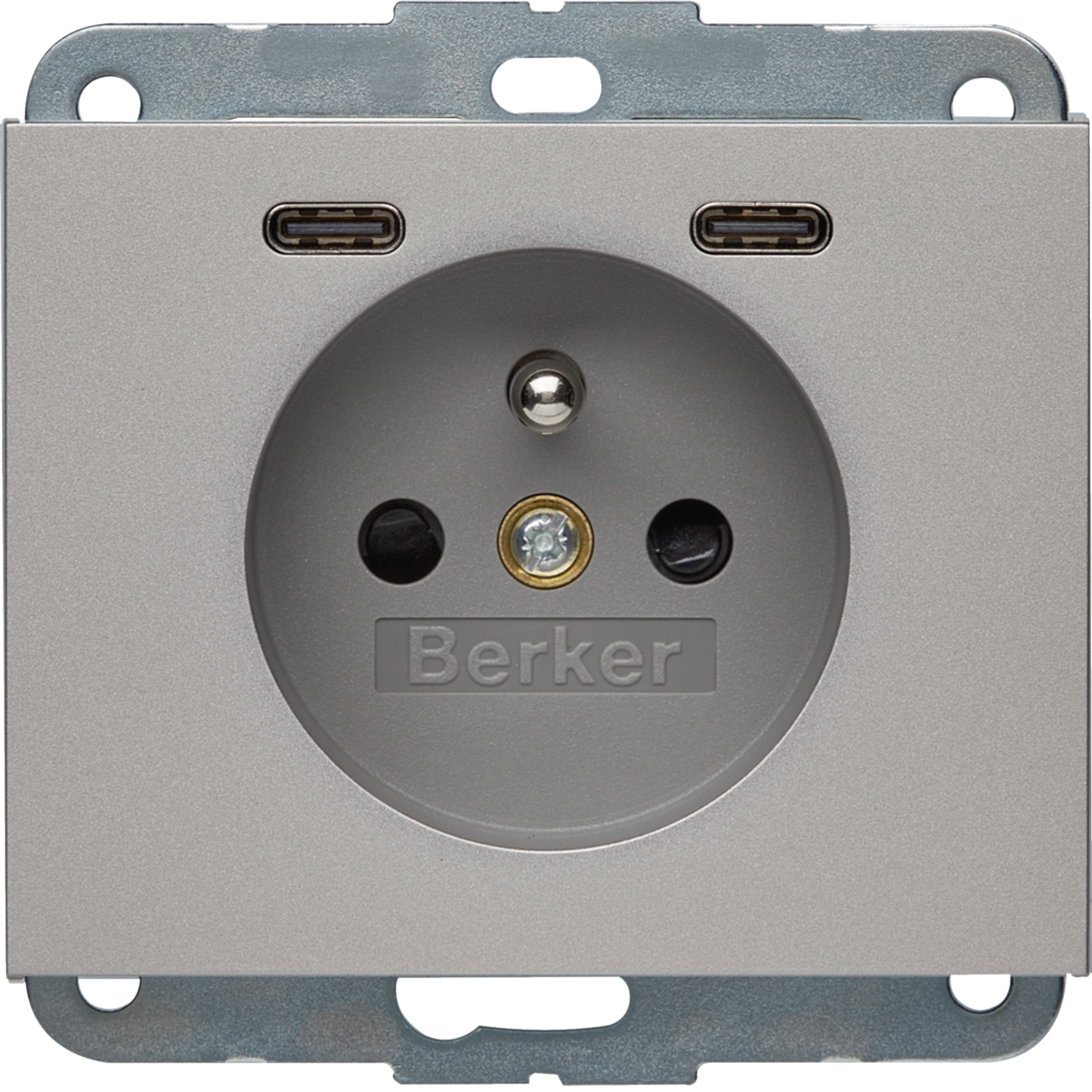 K.5 Gniazdo z uziemieniem z ładowarką USB C+C 20W PD, stal szlachetna lakierow 48167004