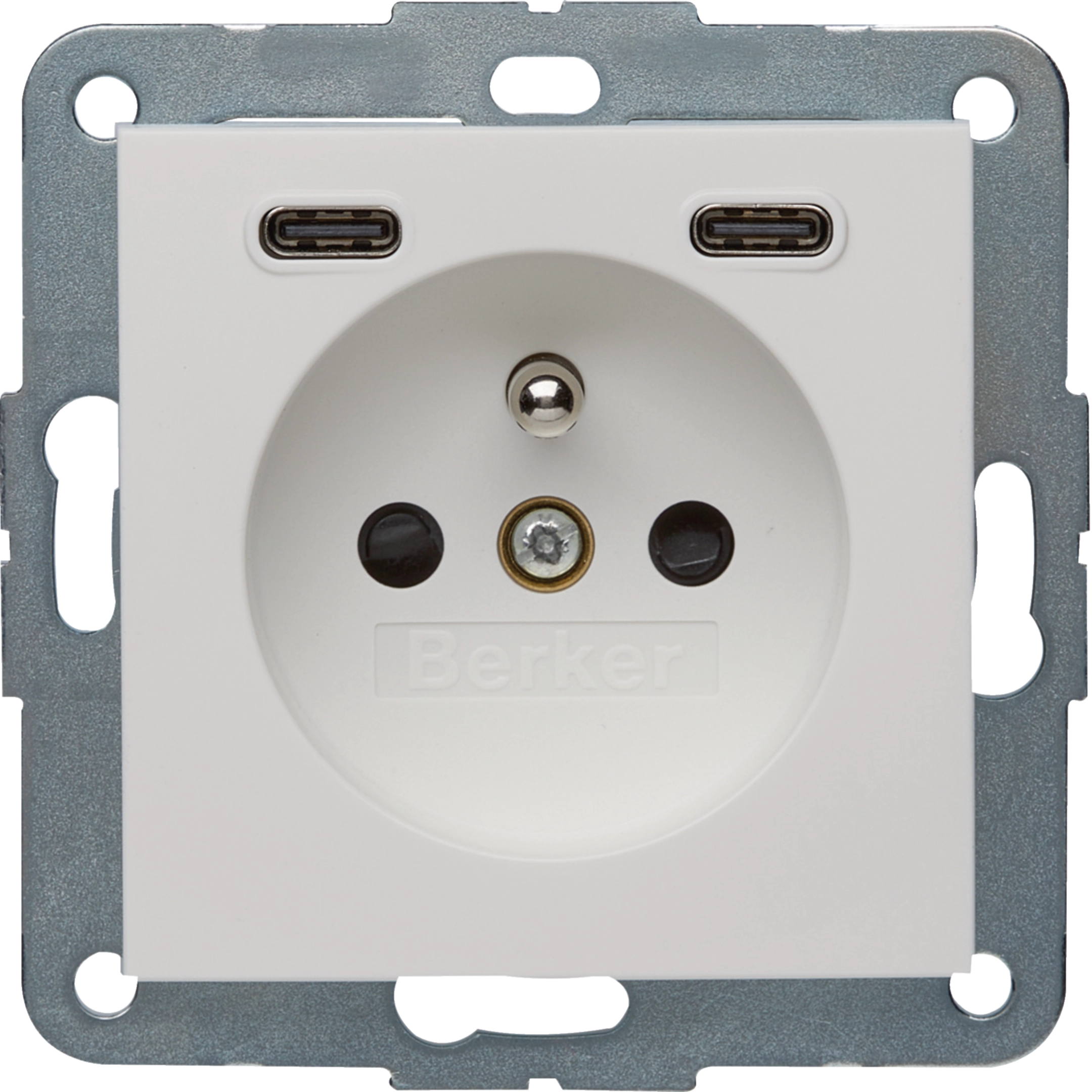 B.x Gniazdo z uziemieniem z ładowarką USB C+C 20W PD, biały połysk