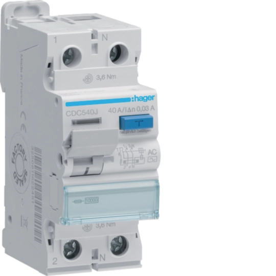 RCCB Wyłącznik różnicowoprądowy 1P+N 40A 30mA 10kA AC CDC540J