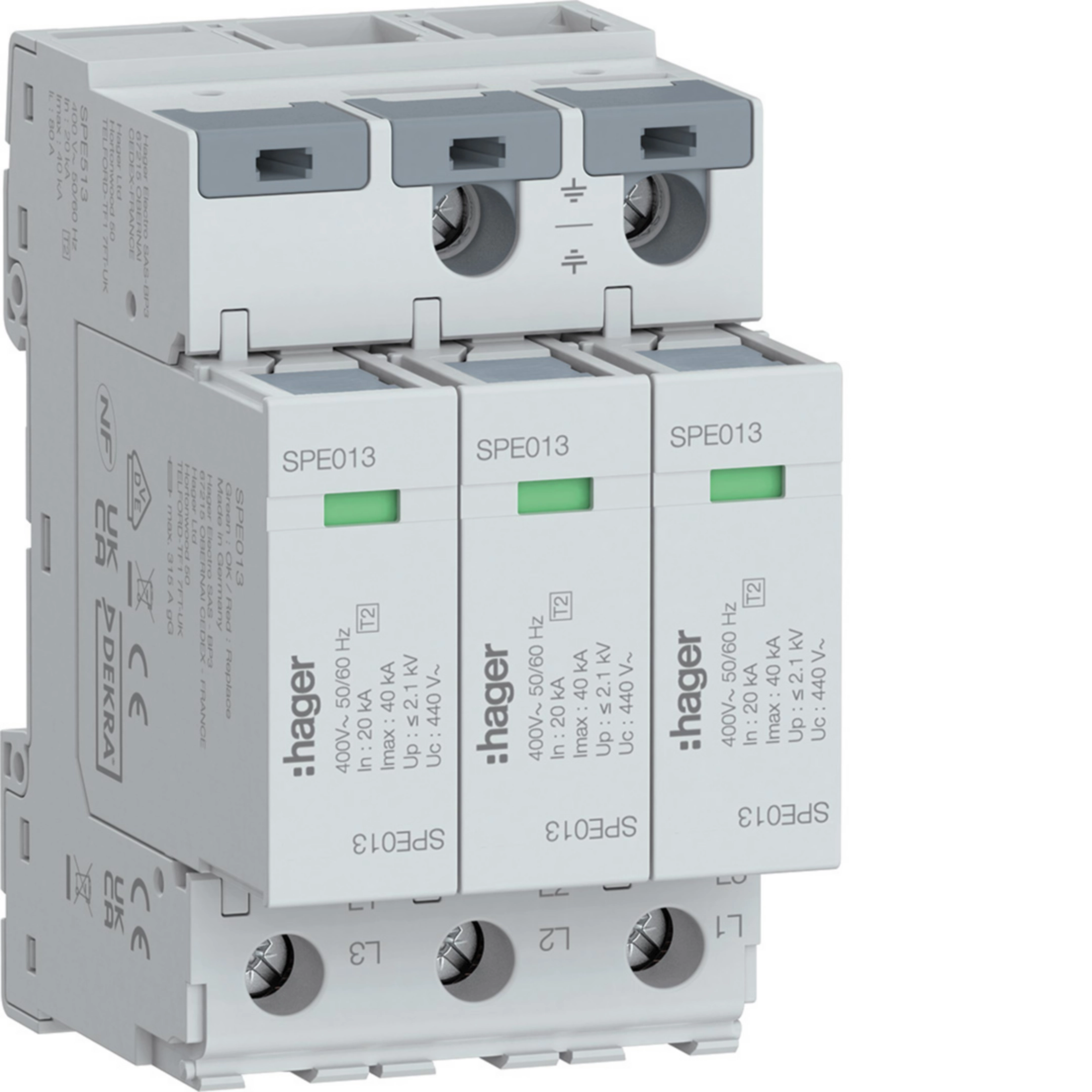 SPD Ogranicznik przepięć T2 3P 3+0 sieć IT In=20kA Imax=40kA Up≤2,2kV SPE513