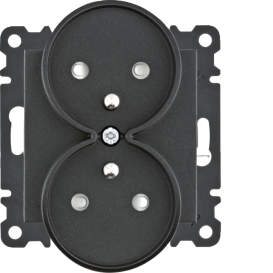 lumina Gniazdo z uziemieniem podwójne z przesłoną styków, czarny WL1343
