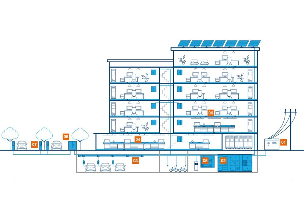 W Hager znajdziesz kompleksowe systemy prowadzenia przewodów, dzięki którym możliwe jest elastyczne dostarczanie energii i danych w budynku. Do nowoczesnych obiektów, wyposażonych w parkingi ze stacjami ładowania pojazdów elektrycznych, dostarczamy szynoprzewody z układami zarządzania obciążeniem. Proponujemy rozwiązania, które wpisują się w kanony zrównoważonej architektury.