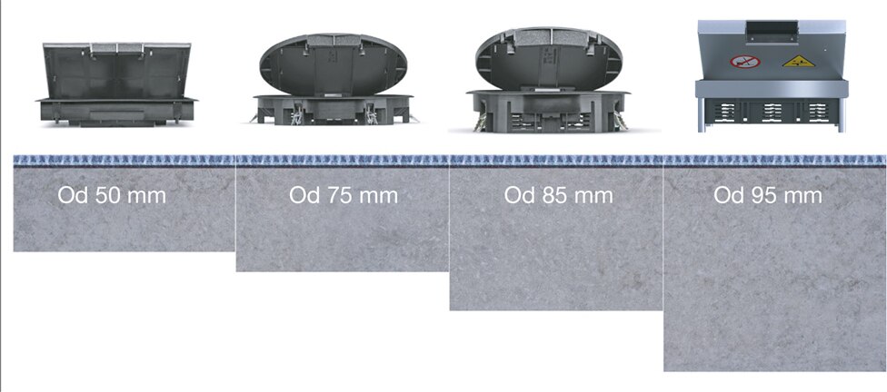 - puszki podłogowe ze stali nierdzewnej do wysokości wylewki od 95 mm -