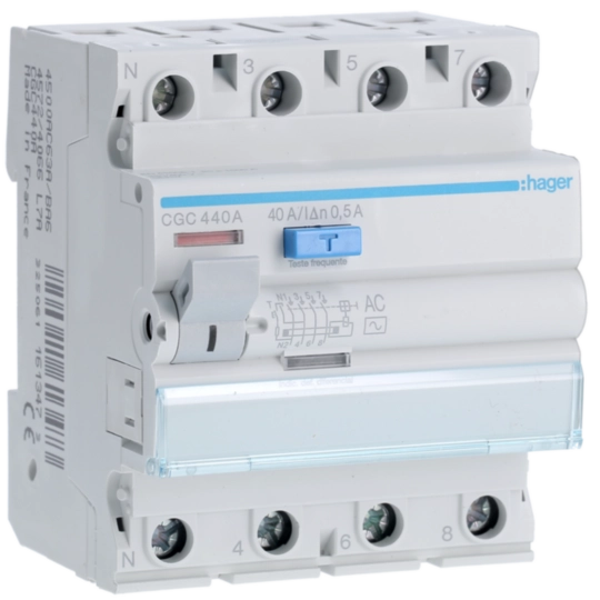 Inter. dif. 4P 40A 500mA tipo AC 4M CGC440A
