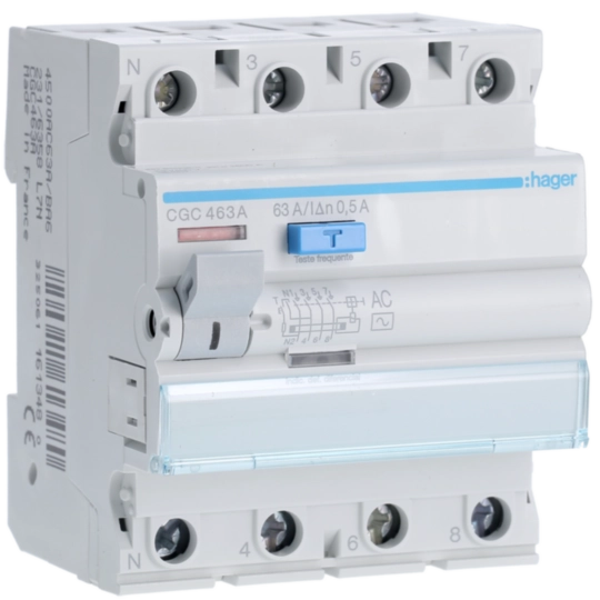 Inter. dif. 4P 63A 500mA tipo AC 4M CGC463A