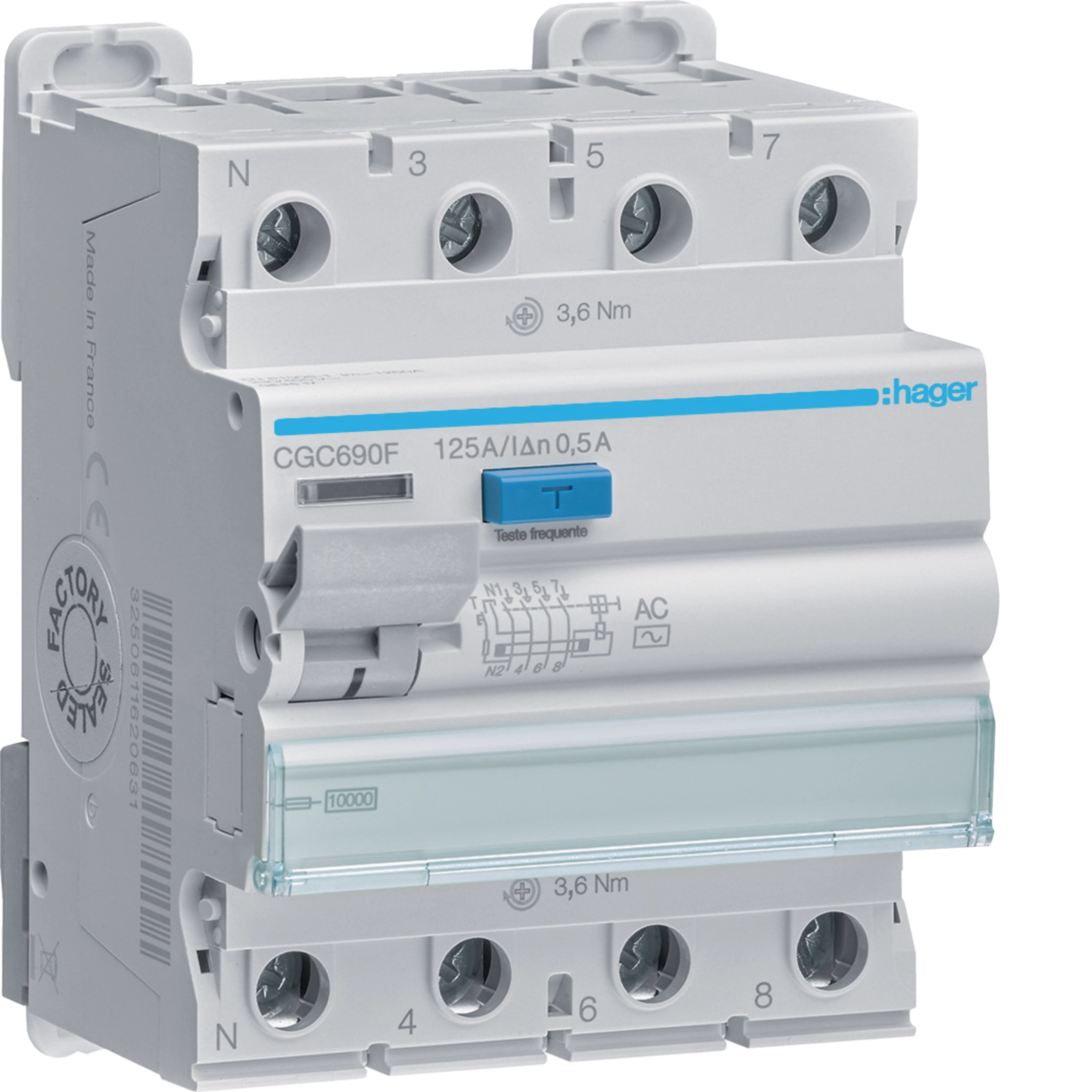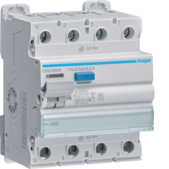 Inter. dif. 3P+N 125A 500 mA tipo AC 4M CGC690F