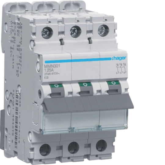 Disjuntor magnético 3P 1,25A 25kA 3M MMN301
