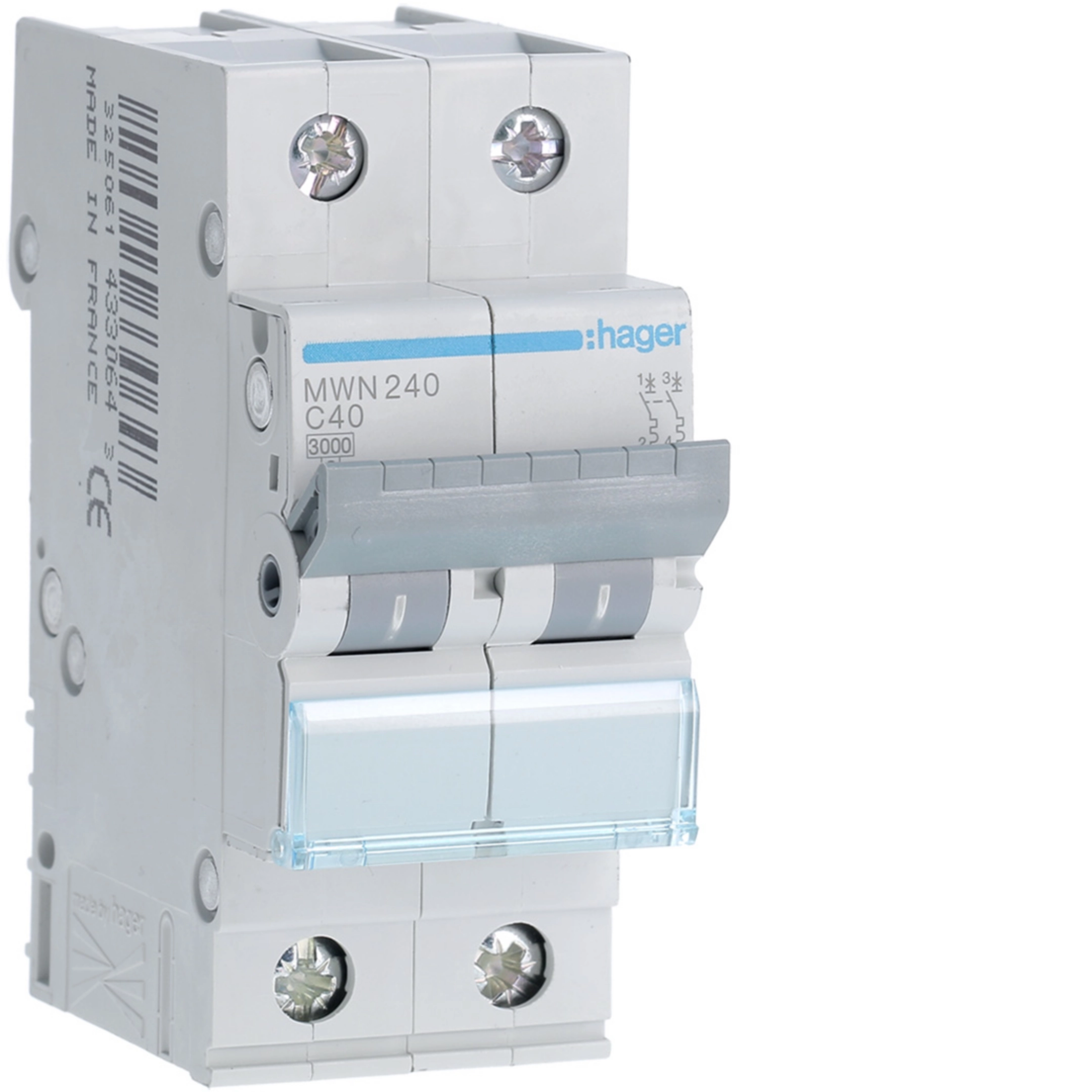 Disjuntor 2 Pólos 40A Curva C 3kA 2 Módulos referência:MWN240 foi projetado para proteger os circuitos elétricos contra sobrecargas e curtos-circuitos. Sua capacidade de interrupção de 3 kA e sua curva C permitem uma desconexão rápida em caso de sobrecargas moderadas, ideal para instalações resienciais.