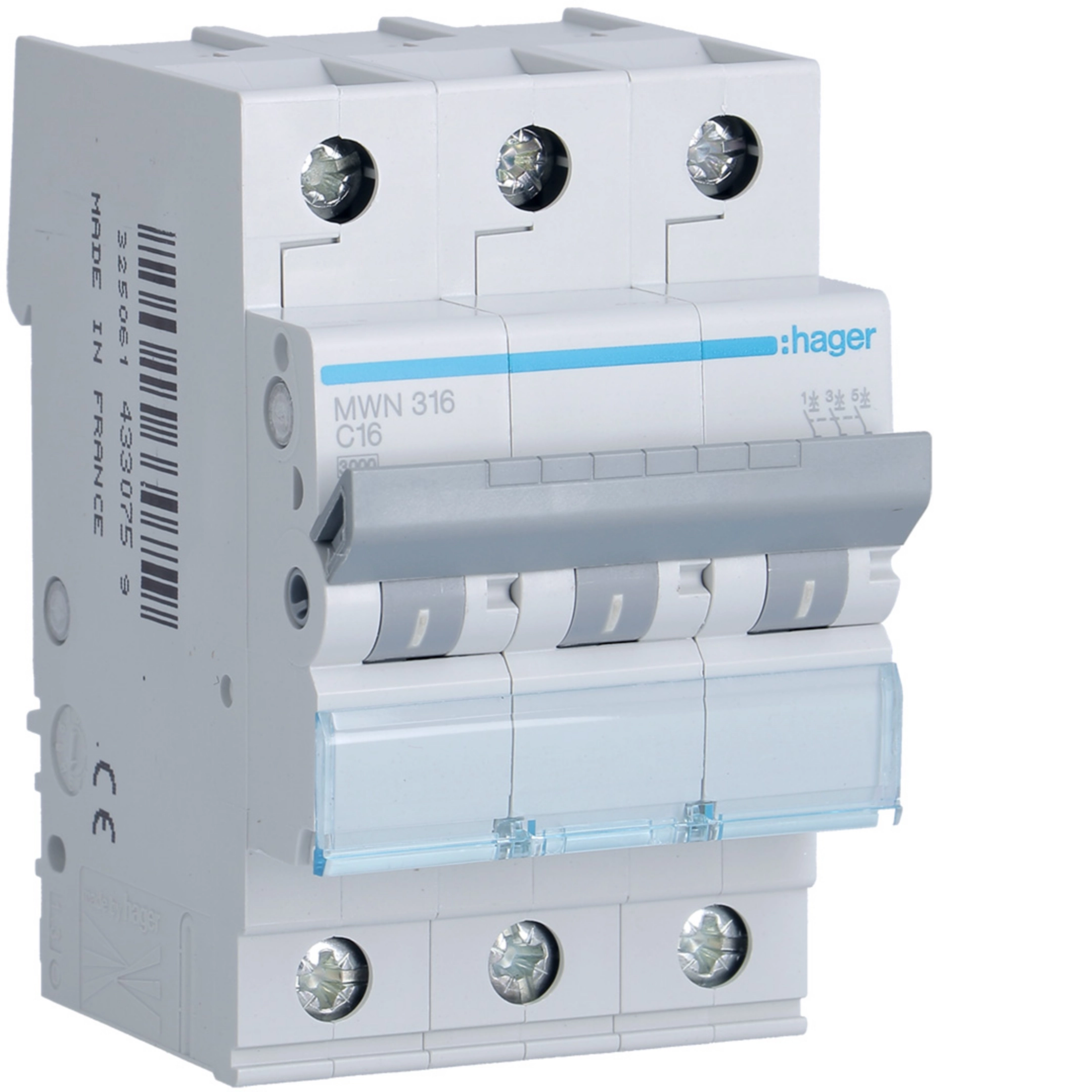 Disjuntor 3 Pólos 16A Curva C 3kA 3 Módulos referência:MWN316 foi projetado para proteger os circuitos elétricos contra sobrecargas e curtos-circuitos. Sua capacidade de interrupção de 3 kA e sua curva C permitem uma desconexão rápida em caso de sobrecargas moderadas, ideal para instalações resienciais.
