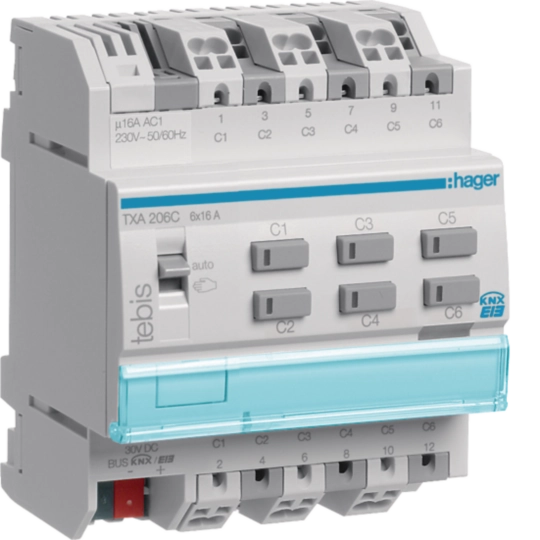 Actuador binário 6 canais 16A KNX TXA206C