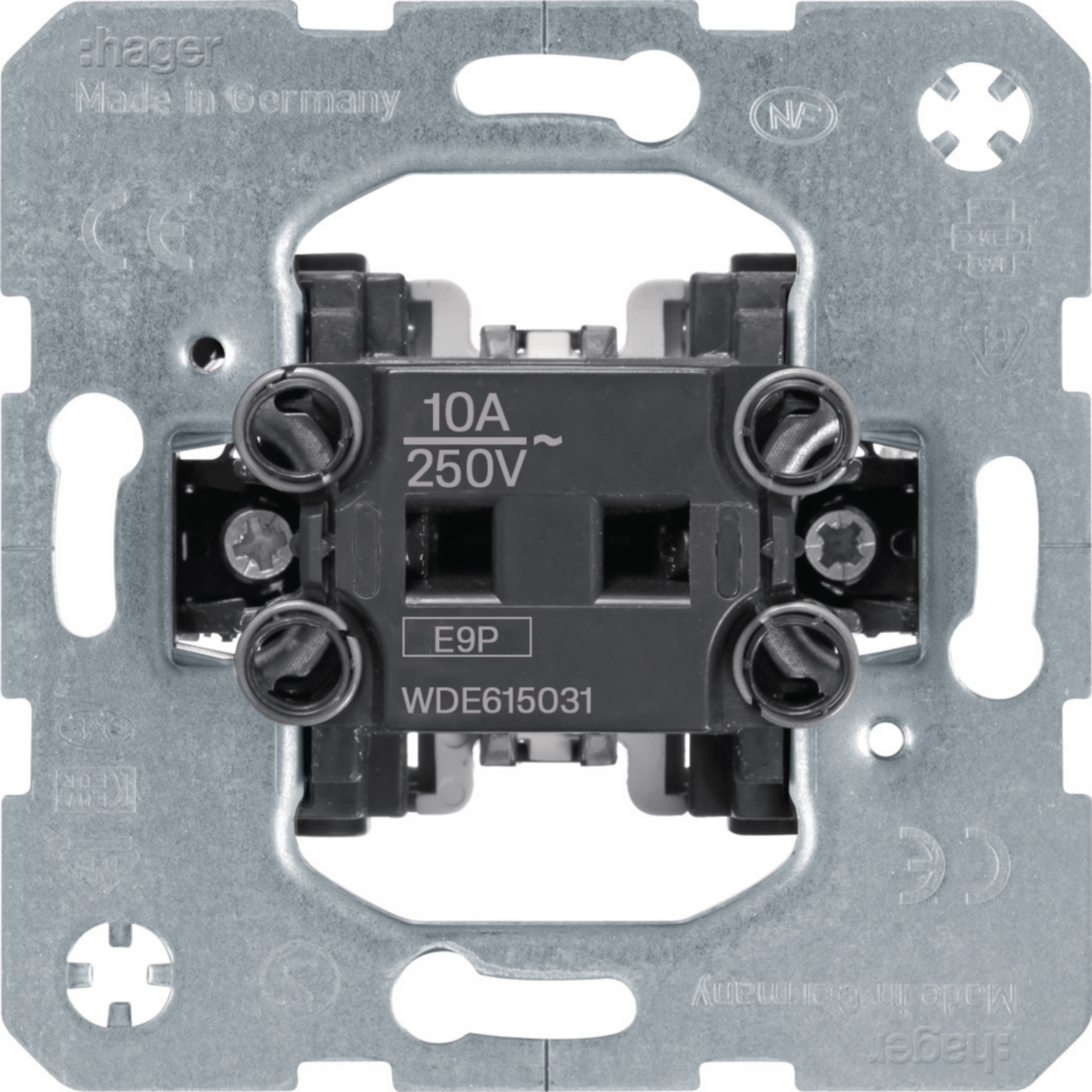 Tryckknapp (återfj strömst) 1-polig, 10 AX, snabbanslutning, insats utan klor WDE615031