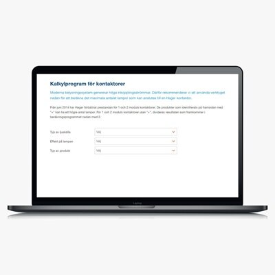 Hager har flera konfiguratorer och beräkningsprogram som snabbt och enkelt hjälper dig att räkna ut rätt antal produkter till ditt projekt. På så sätt förenklas beställningen och du slipper missa några produkter.