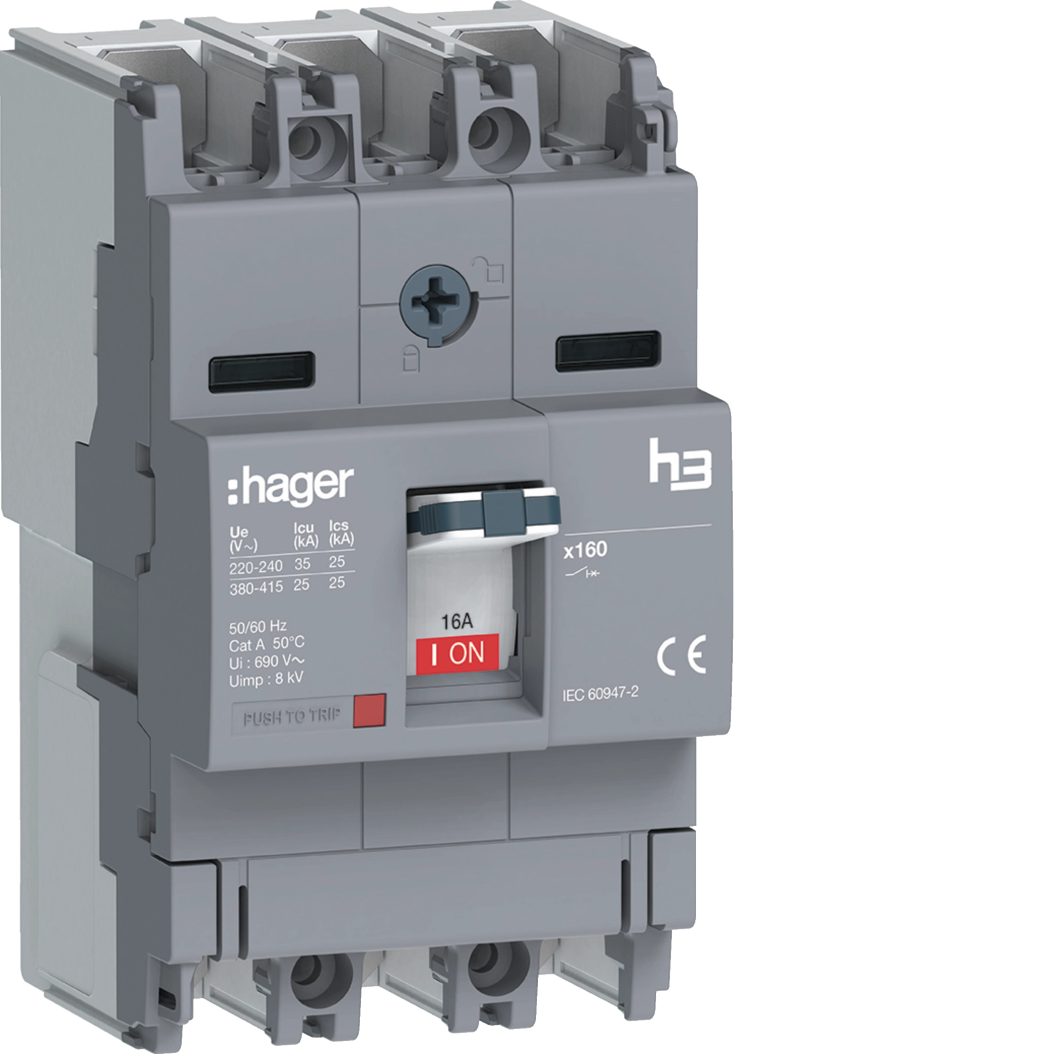 Moulded Case Circuit Breaker h3 x160 TM FIX 3P3D 16A 25kA Ring_lug HHA016A